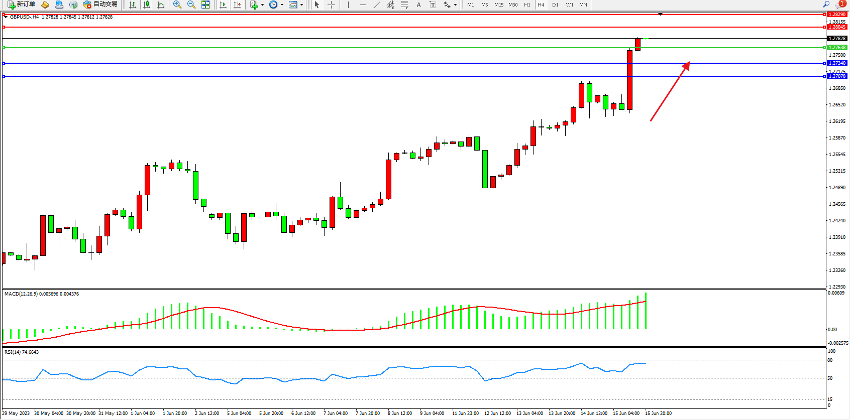 英镑美元GBPUSD ——4小时K线图显示: