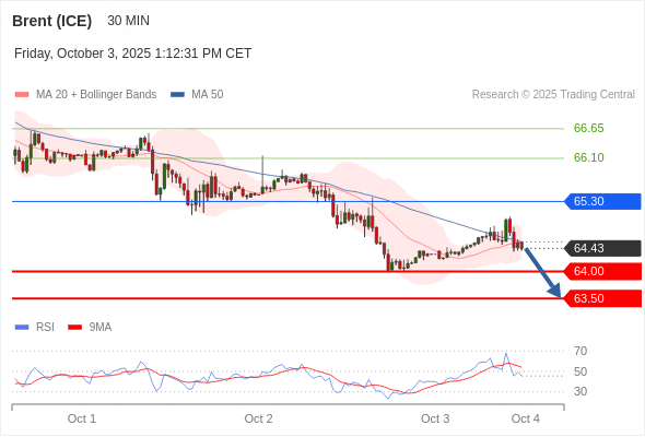 在 65.30 之下,看跌,目标价位为 64.00 ,然后为 63.50 。
